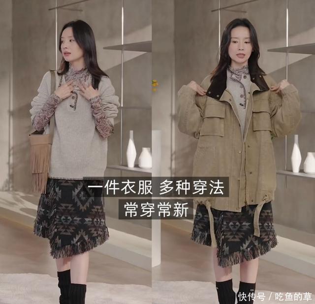 3. 道具减法:能拆的配饰绝不让你多买很多主播靠“配饰大礼包”拉高客单价,她反过来——一件衣服送三种“可拆卸”方案:羊绒大衣附赠一根腰带、一枚隐形暗扣,拆下来就是H型宽松版;毛衣领口藏按扣,立起来是风衣领,放下去是船型领。等于花一份钱,买两件版型,衣柜瞬间瘦身。